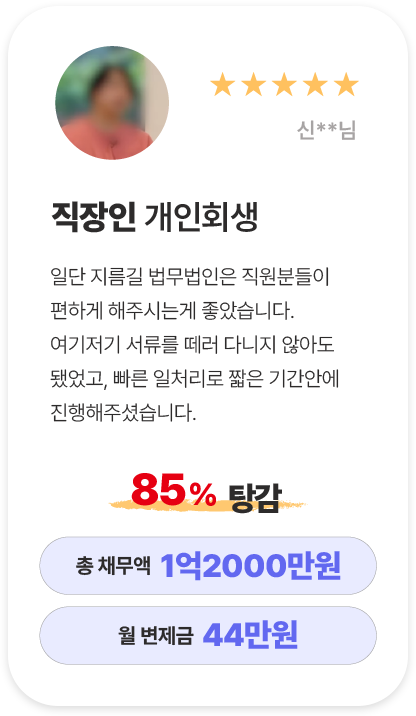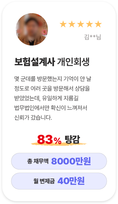 지름길에서는 도산전문변호사가 사건 전 과정을 직접 담당하는 개인회생 올인원 서비스를 제공합니다.