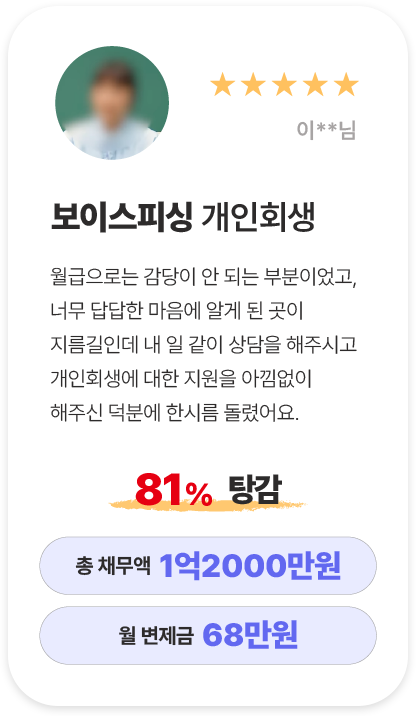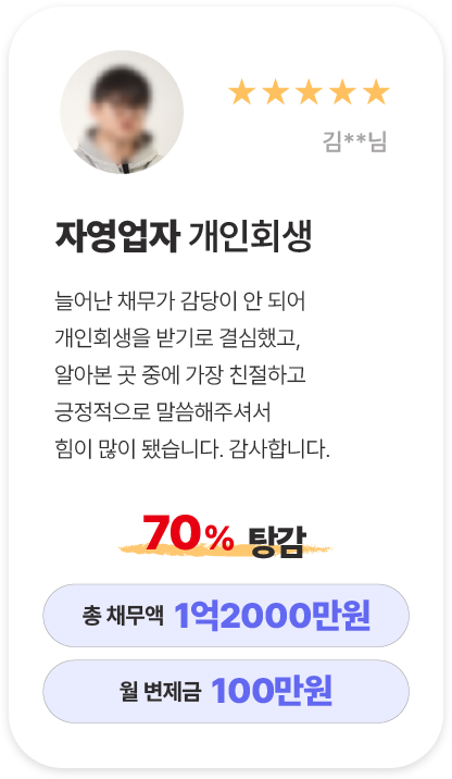 · 개인회생 : 개인회생은 일정 소득이 있다면 직업을 유지한 채 채무를 분할 상환하고 면책받을 수 있는 제도입니다.