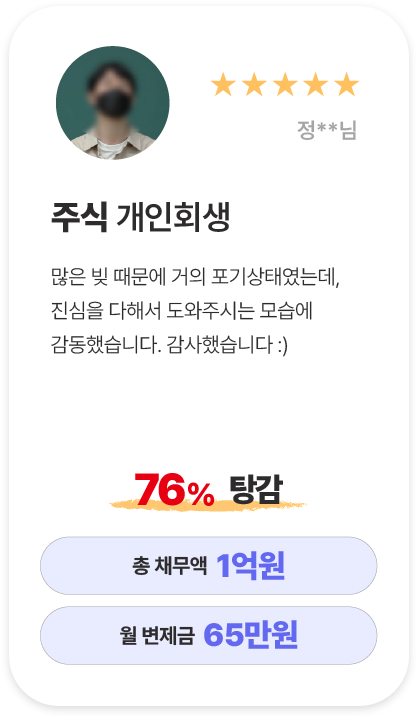 · 개인회생 : 개인회생은 일정 소득이 있다면 직업을 유지한 채 채무를 분할 상환하고 면책받을 수 있는 제도입니다.