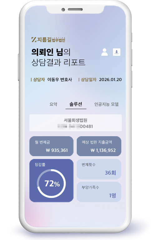 지름길에서는 도산전문변호사가 사건 전 과정을 직접 담당하는 개인회생 올인원 서비스를 제공합니다.